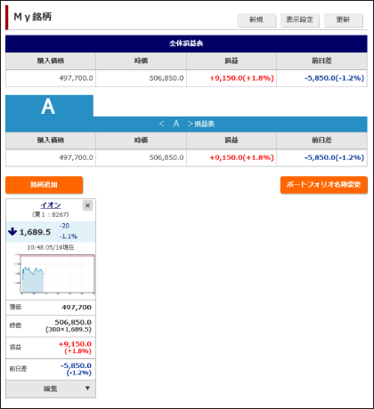 ③ 新しいポートフォリオが『My銘柄』の隣に作成されます。